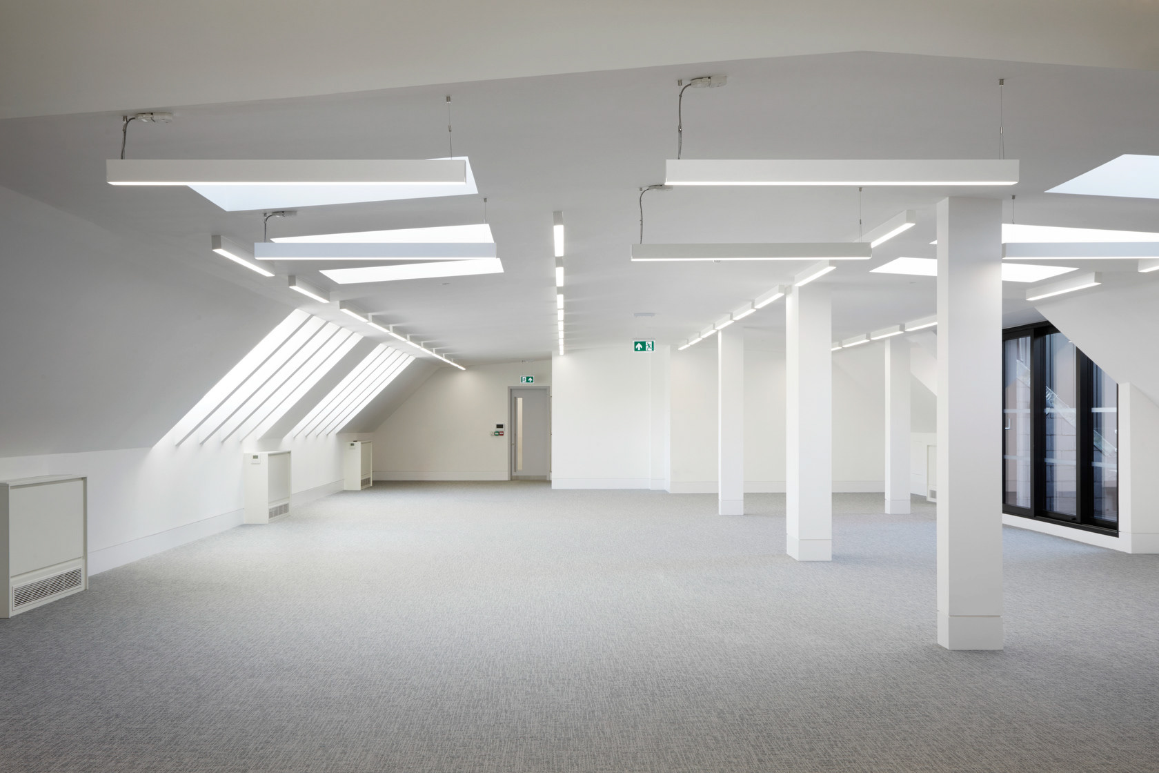 The existing building has been celebrated by including Art Deco inspired and minimalist crafted design elements. The grand staircase running through the building has been stripped back to reveal a cast iron birdcage that has now been exposed and revived with an elegant bronze mesh. The proposed works of the scheme included the following the refurbishment of the whole building including the creation of a new entrance and a new access between the ground floor and the basement. Some extensions into the four light wells and roof have been created in order to maximise the space.