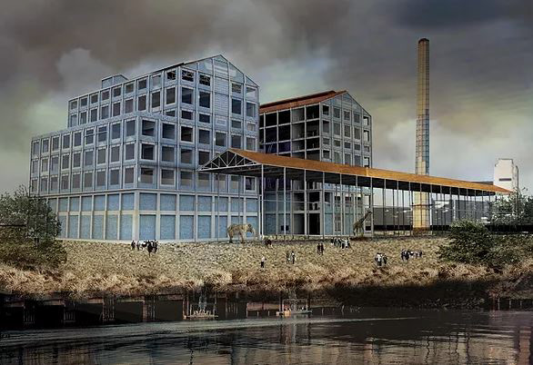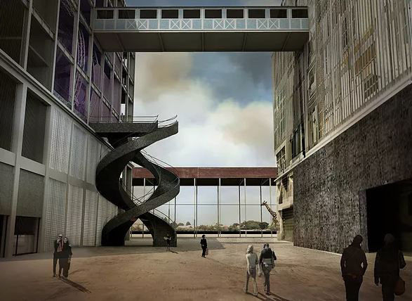 Beghin-Say sugar refinery built in 1935 is situated on an island of the river Loire close to the centre of Nantes. Its silhouette and its two blue boxes cannot be missed when you go to the centre of Nantes coming from the south. However, the refinery is today under production and there is a risk that it could be closed. The idea was to reinterpret and reconvert the factory into a space for arts performance and circus school. Thus, one of the boxes is used to host the circus troops during winter with a caravan inn, including also an internal performance and a vertical menagerie . The other box is devoted to circus training by offering training facilities for professionals as well as children’s learning